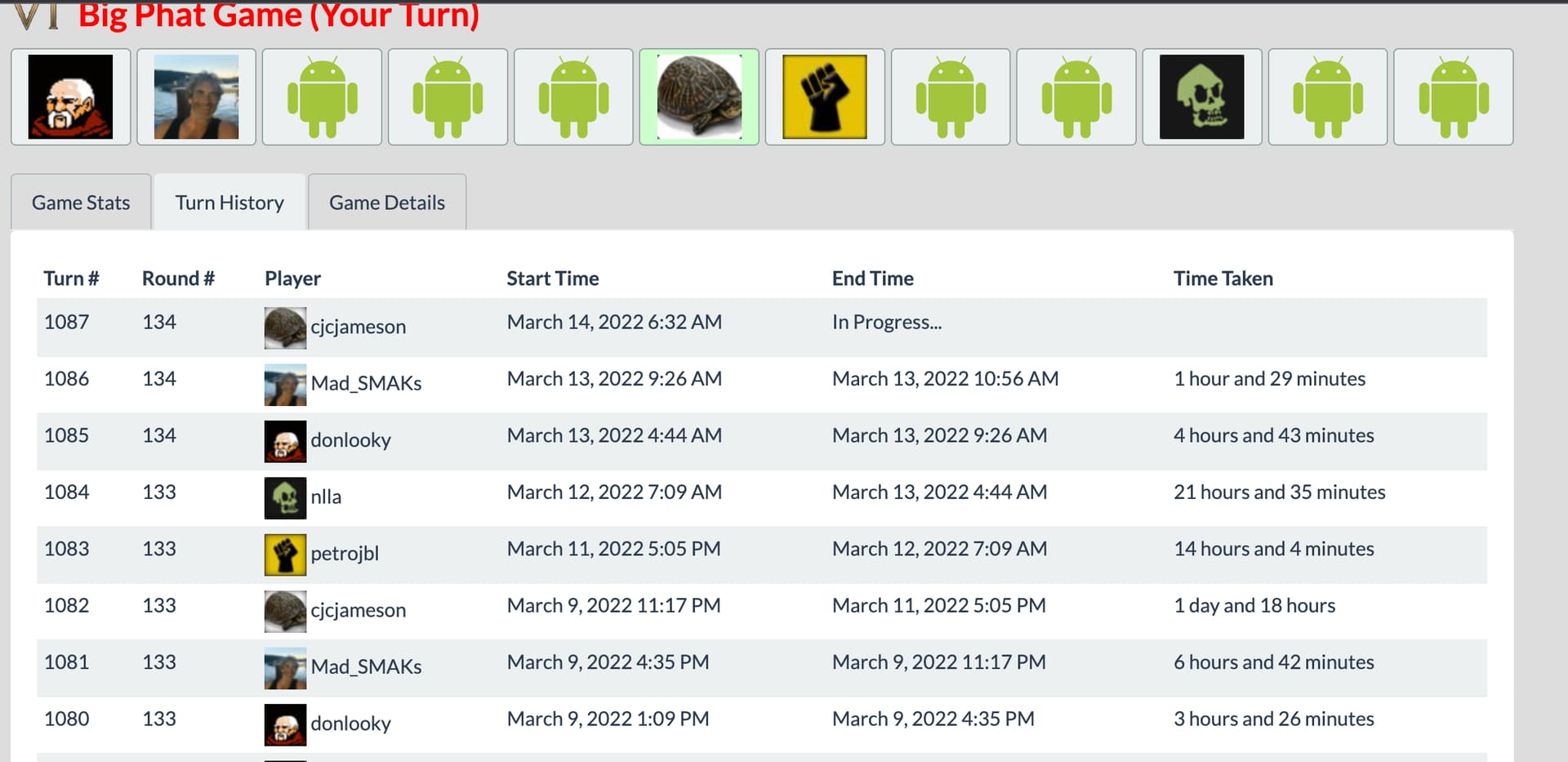 - I know I had been slow to take some turns in the mid-game; easier to keep a cadence now