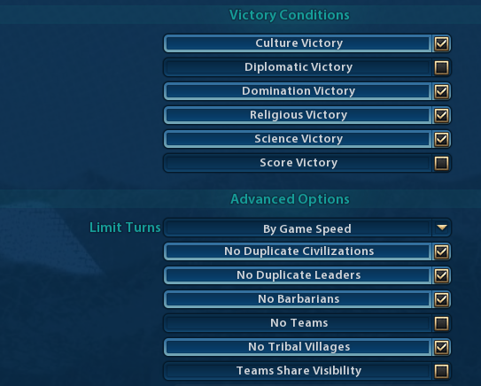 Good idea to start this game new. I want to take this opportunity to rule out Spain for this game. Not only is it crippled when not founding it’s own religion, it also has a sea based ability, and an ability which requires at least two continents. Both we don’t have.